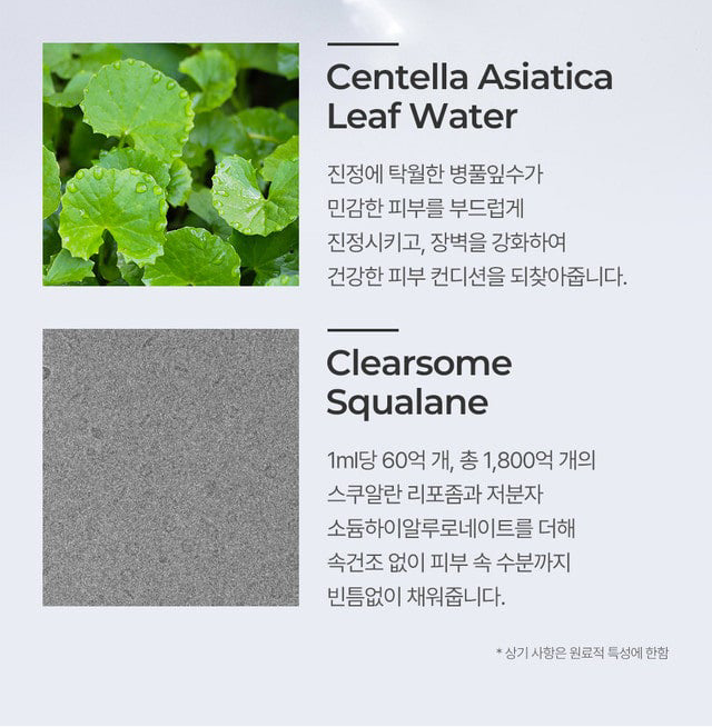 Formulated with Centella Asiatica Leaf Water and Clearsome Squalane liposomes, it penetrates deeply to calm irritation and restore balance.