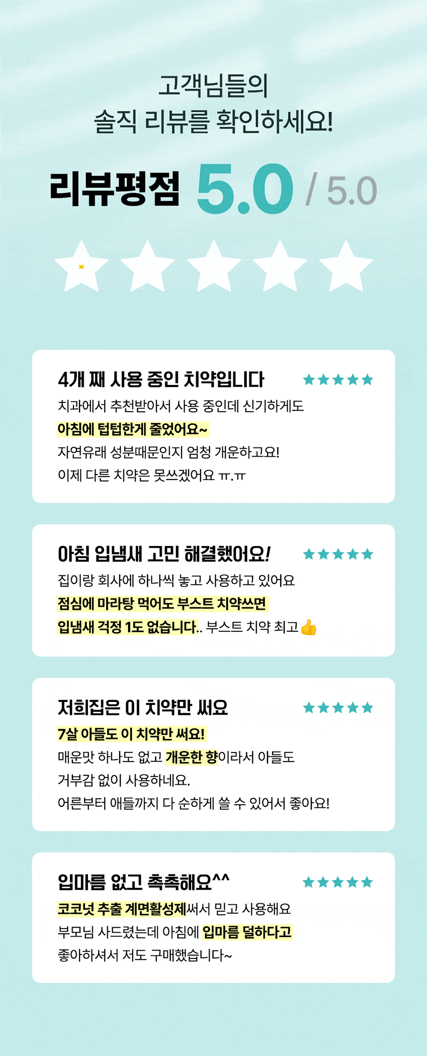 - “Morning breath completely gone!”